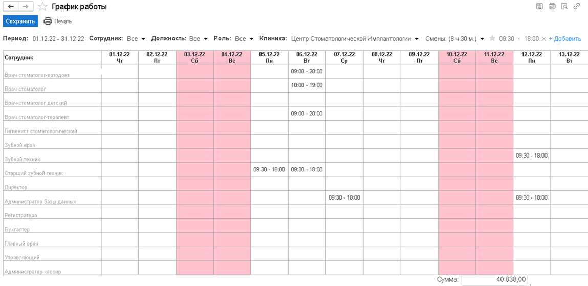 Управление персоналом клиники: планирование графика работы, отчеты по сотрудникам, расчет зарплаты