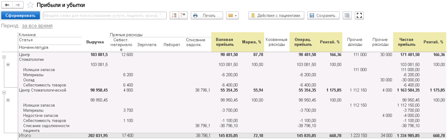 • Получение отчетов по пациентам: динамика и структура продаж, анализ каналов привлечения, взаиморасчеты, средний чек и другие показатели.