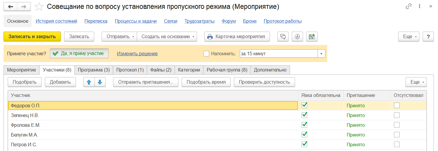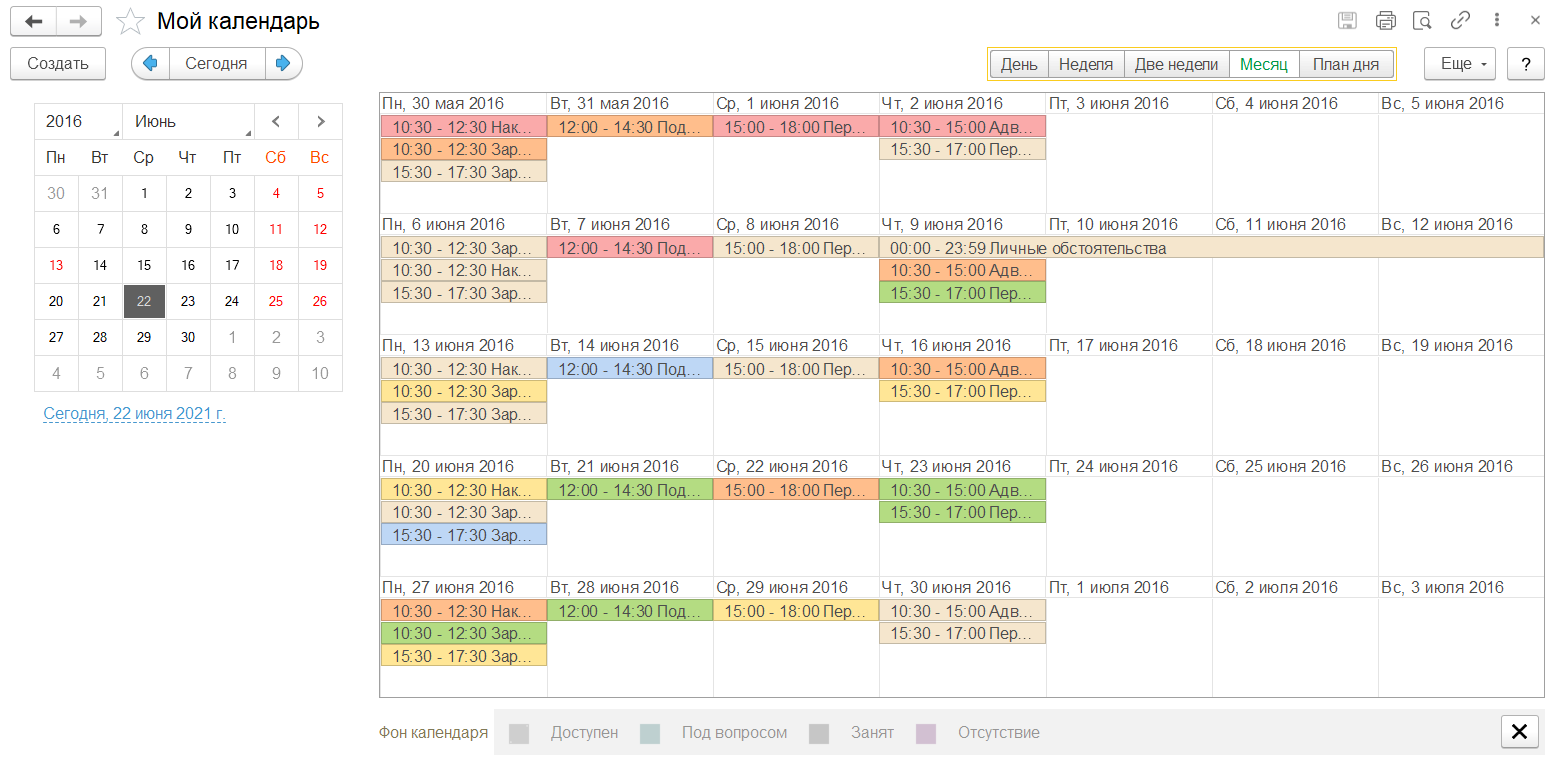 Создавайте мероприятия с учетом контроля свободного времени сотрудников.