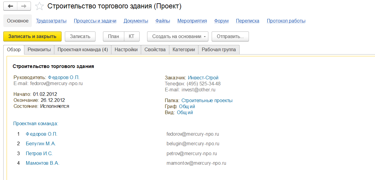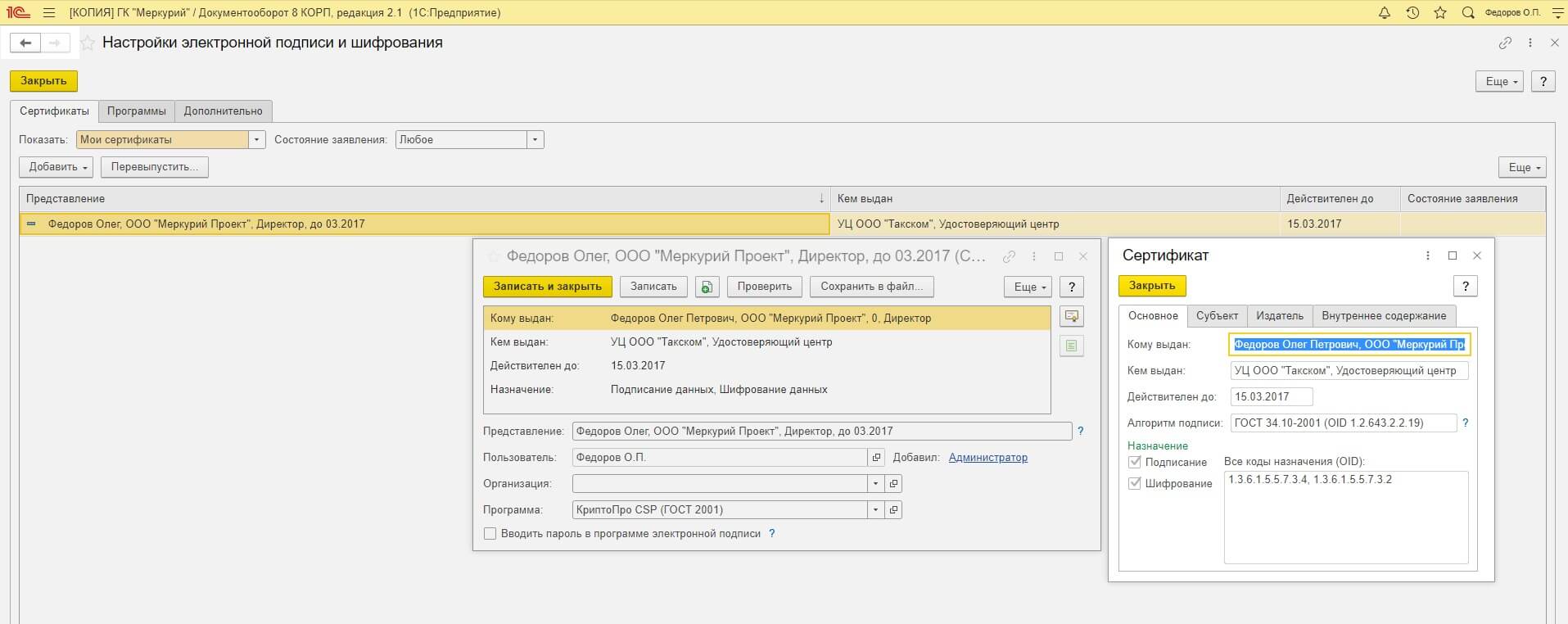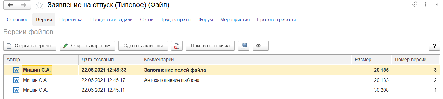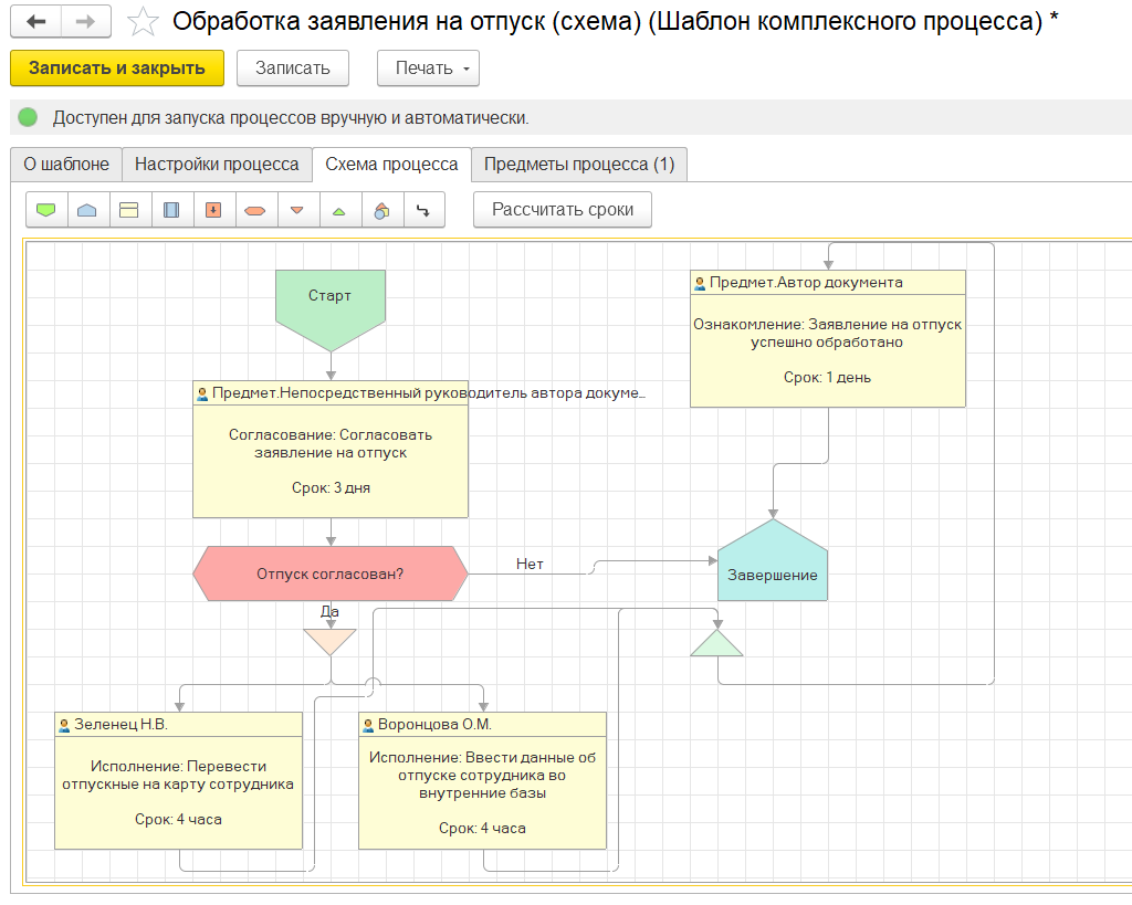 Когда основные настройки завершены проводим тестирование процессов в 1С:Документооборот. Для
