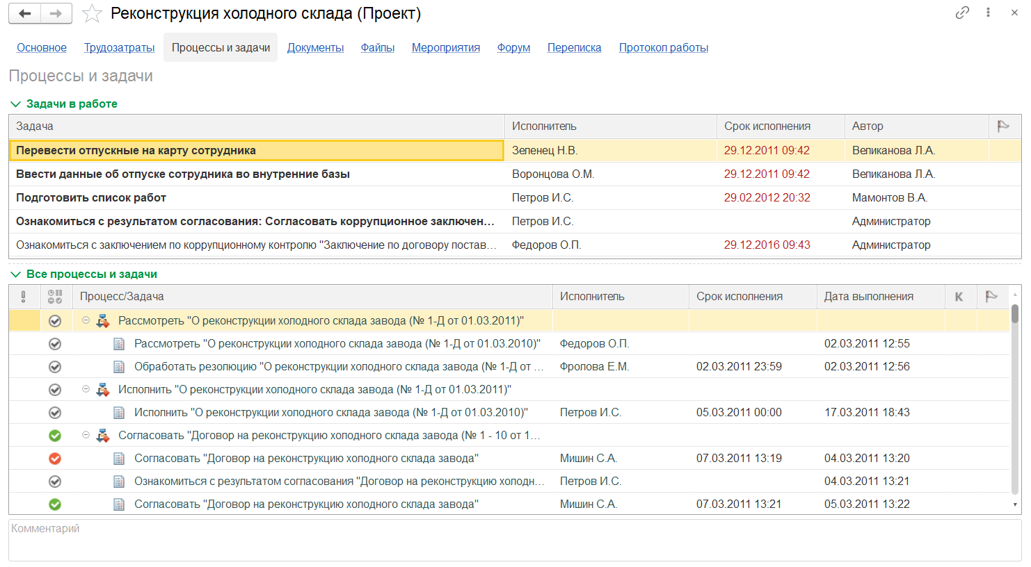 Регламентируйте работу, используя типовые (шаблонные) и уникальные процессы, задавая жесткую маршрутизацию документов, настраивая запуск процессов по бизнес-событиям. Отслеживайте иерархию процессов, собирая их в цепочки, выстраивайте необходимую последовательность работ.