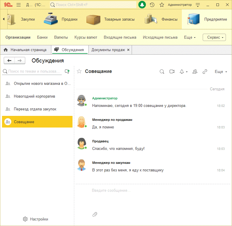 1С:Система взаимодействия – это инструмент, позволяющий безопасно организовать взаимодействие сотрудников прямо внутри вашей базы: вести совместную работу и обсуждение документов, общаться в чатах, делать аудио и видеозвонки и обмениваться файлами