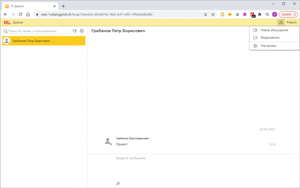 Функционал чатов, звонков и общения доступен также в мобильном клиенте 1С:Системы взаимодействия.