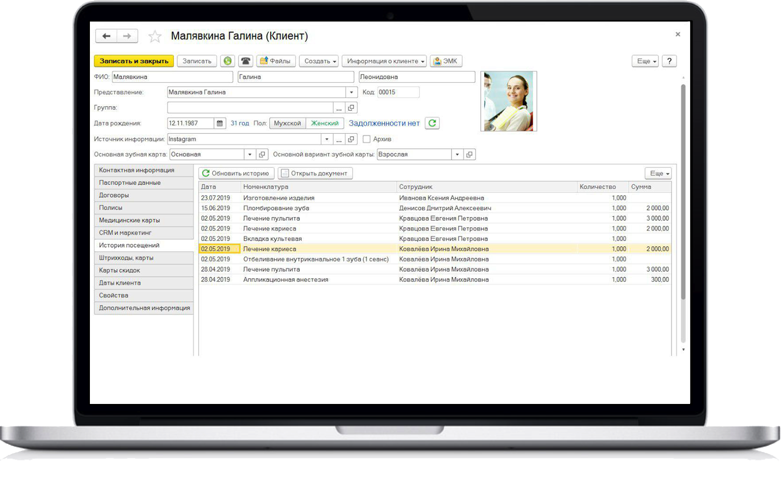 Удобная программа для управления стоматологической клиникой на базе 1С.