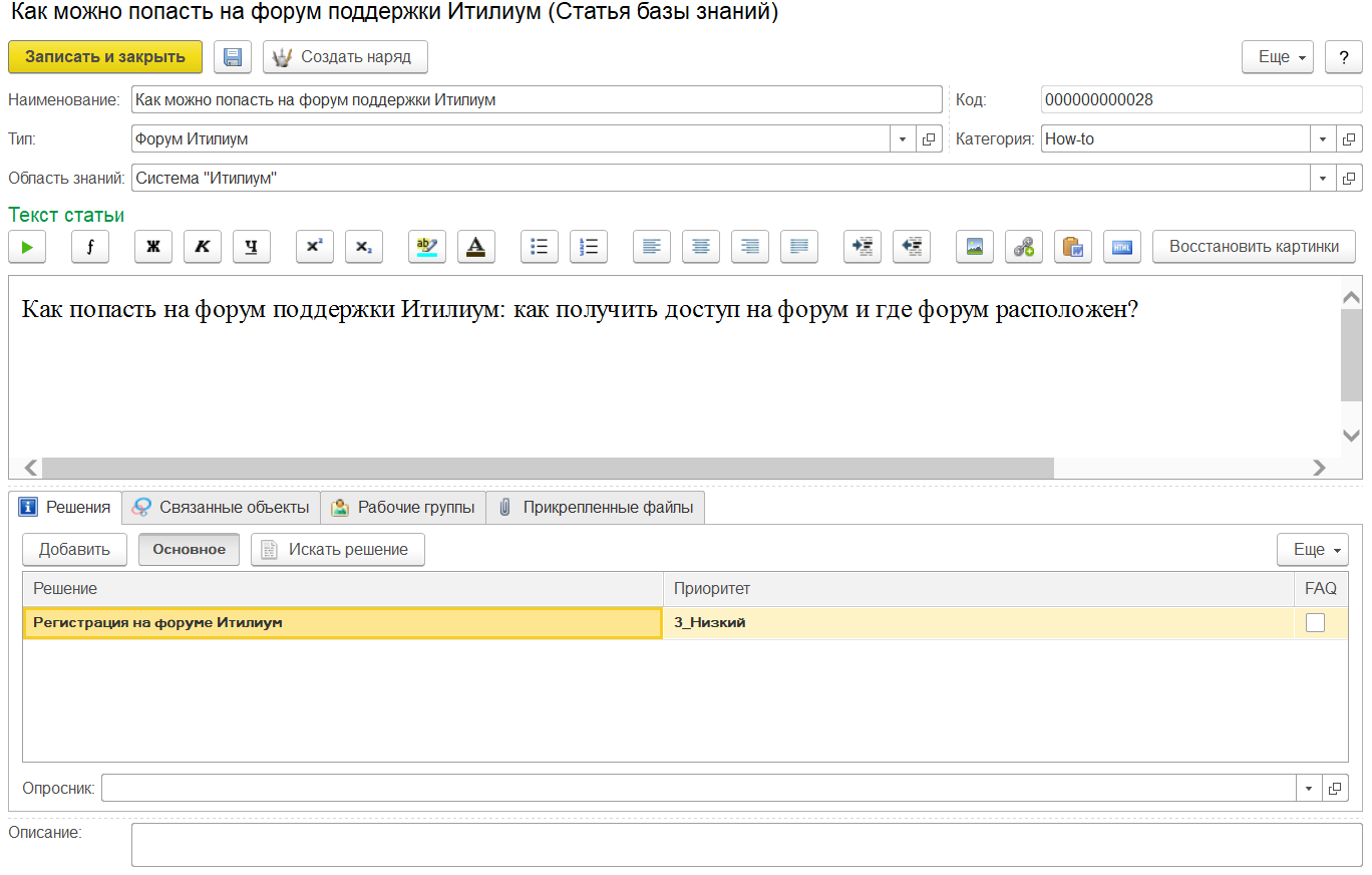 Установка платформы 1С и конфигурации 1С:ITILIUM, настройка параметров запуска