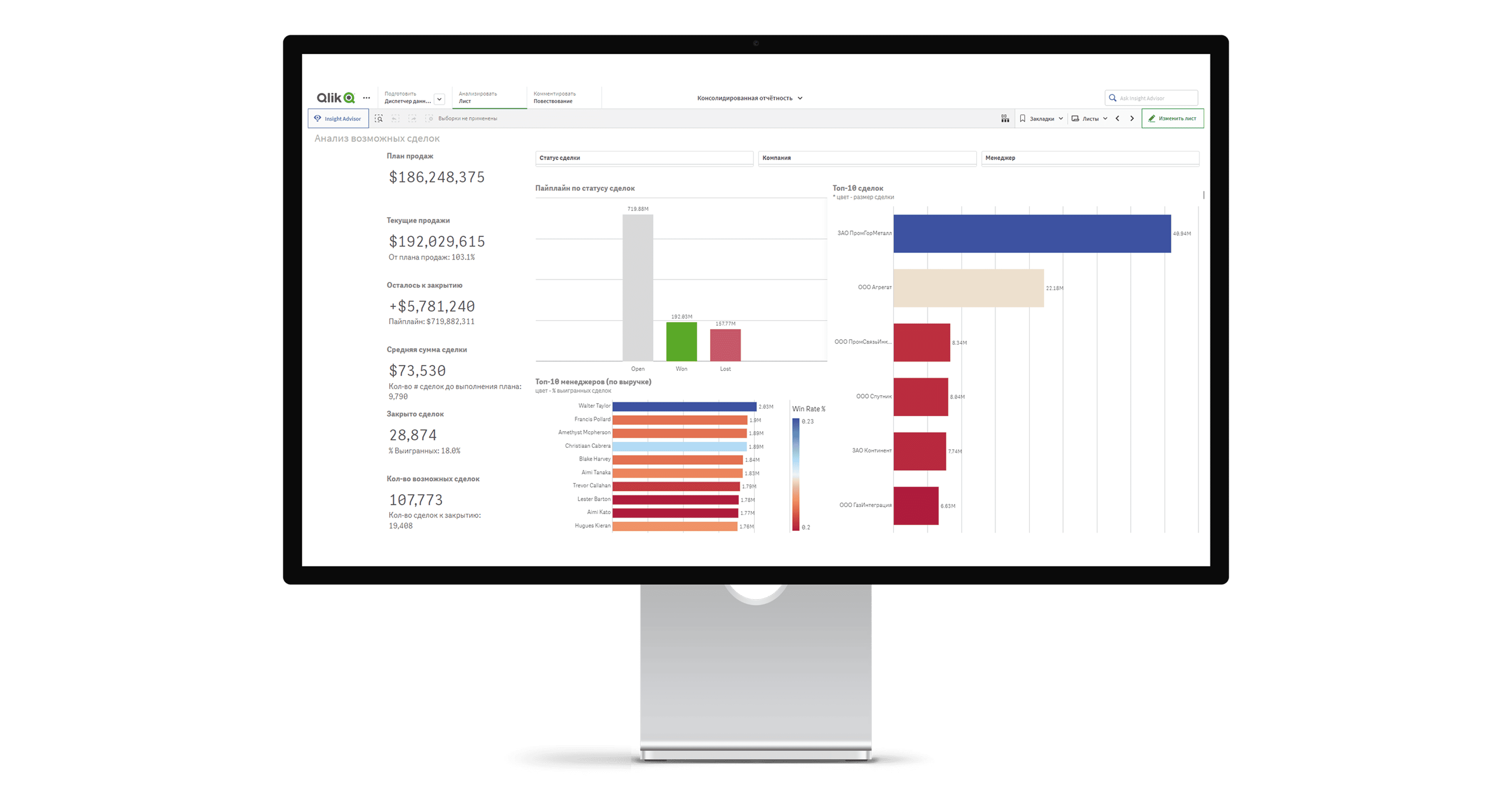 BI-система объединяет данные из разных информационных систем компании (CRM, ERP и др.), формируя полное представление о бизнесе