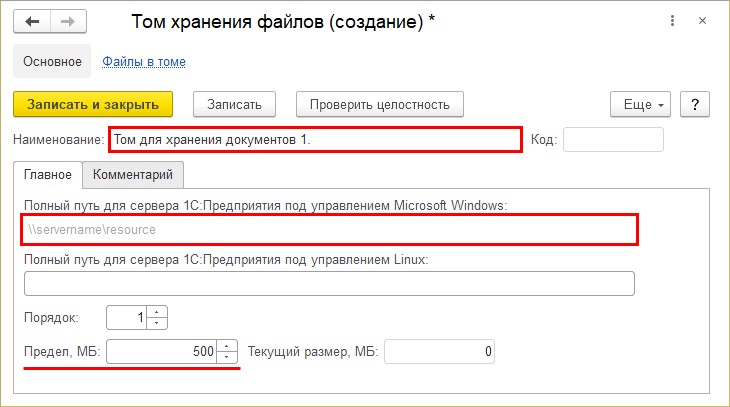 - Первый – хранить файлы на диске компьютера в томах. При такой настройке документы будут доступны из базы столь же легко, как если бы они в ней хранились, но в действительности хранятся на диске компьютера либо на сервере в отдельной папке.