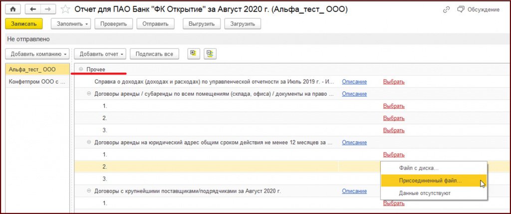 Если учет группы компаний осуществляется в отдельных базах, пакеты отчетности могут быть подготовлены и подписаны каждый в своей базе. Отчеты выгружают в zip-архивы и загружают в общий пакет в базе основной компании группы.
