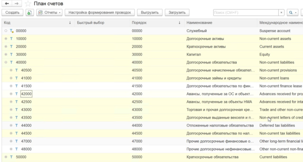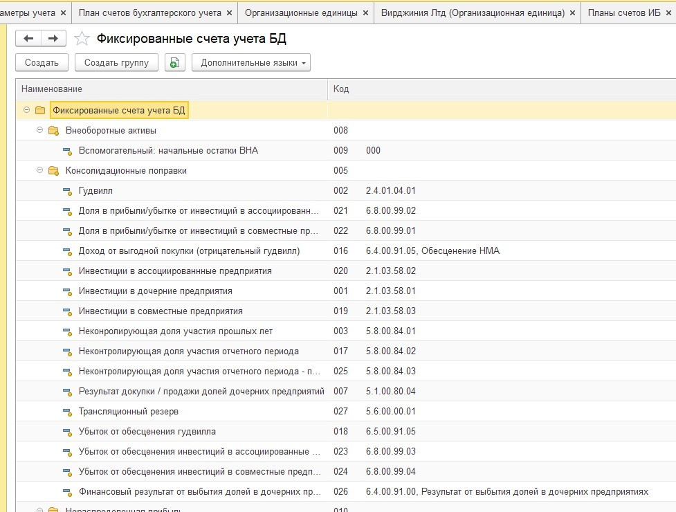 Фиксированные счета учета БД в 1С:Управление Холдингом