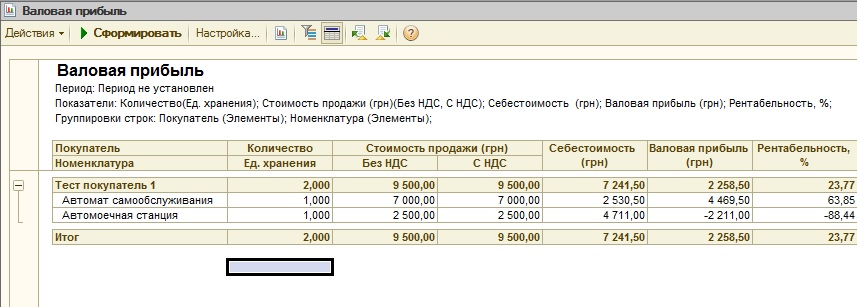 - Только после появления готовой продукции с верной себестоимостью на остатках можно оформить продажу и проверить с помощью учета по валовой прибыли количество заработанных денежных средств.