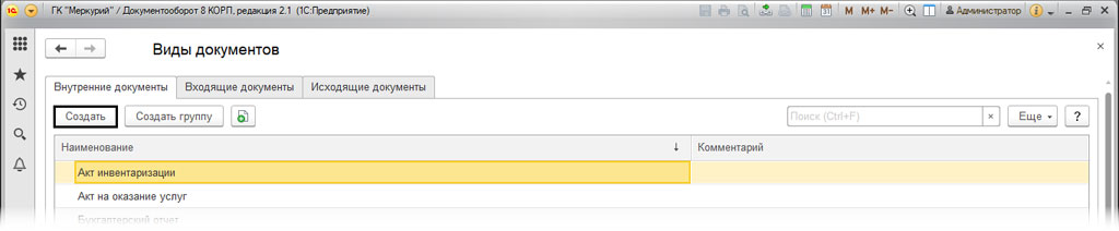 Нажимаем на кнопку "Создать" и создаем нужный вид документа.