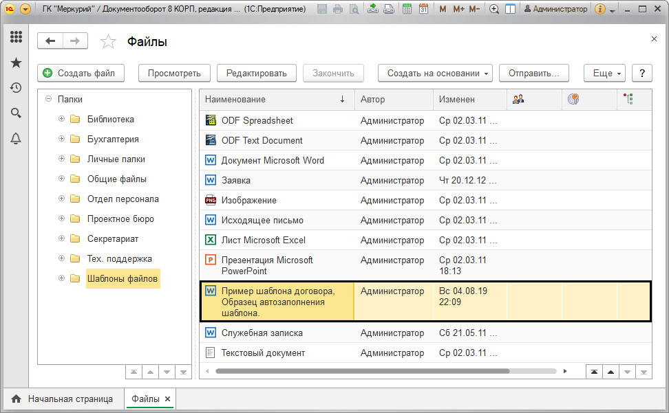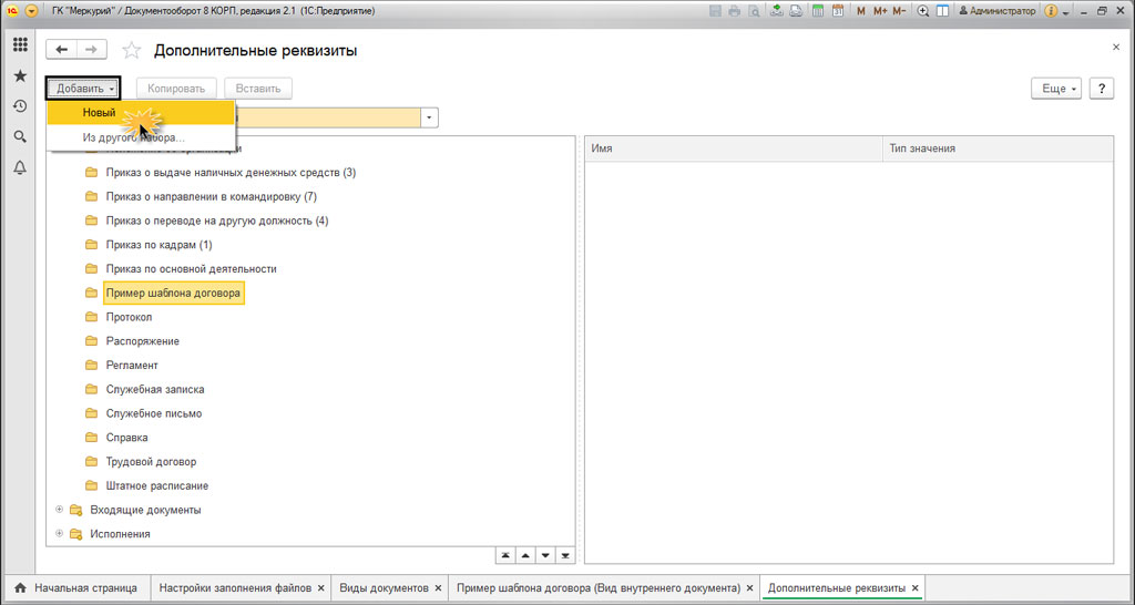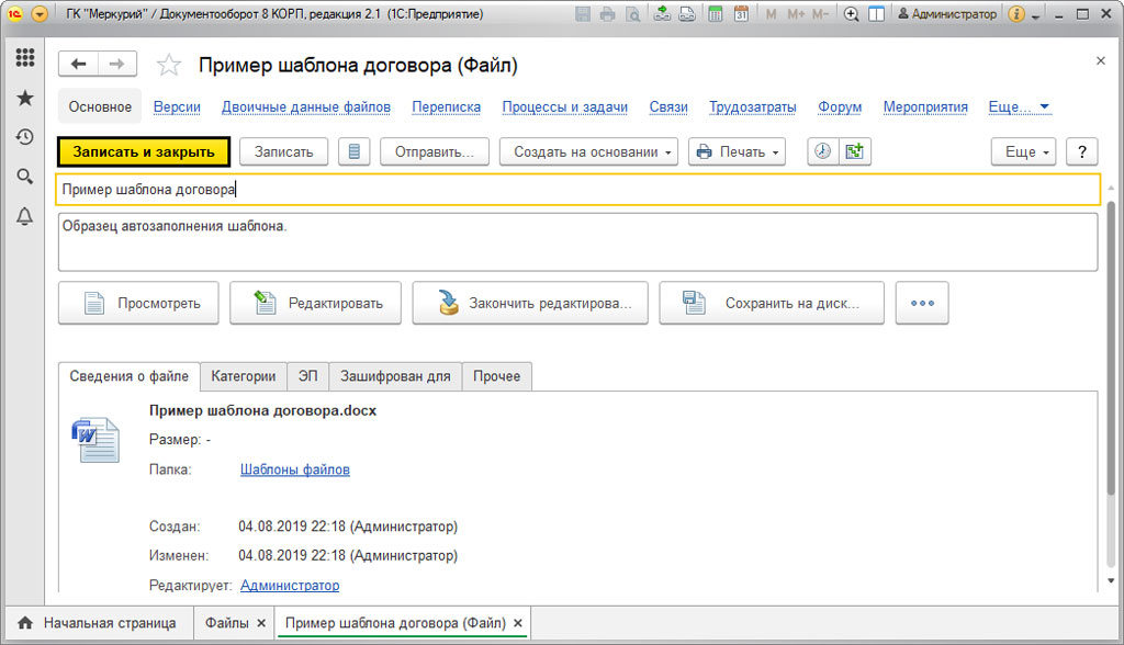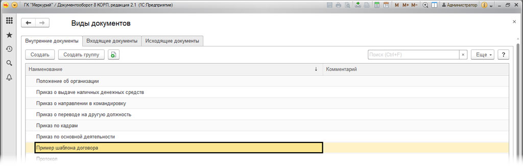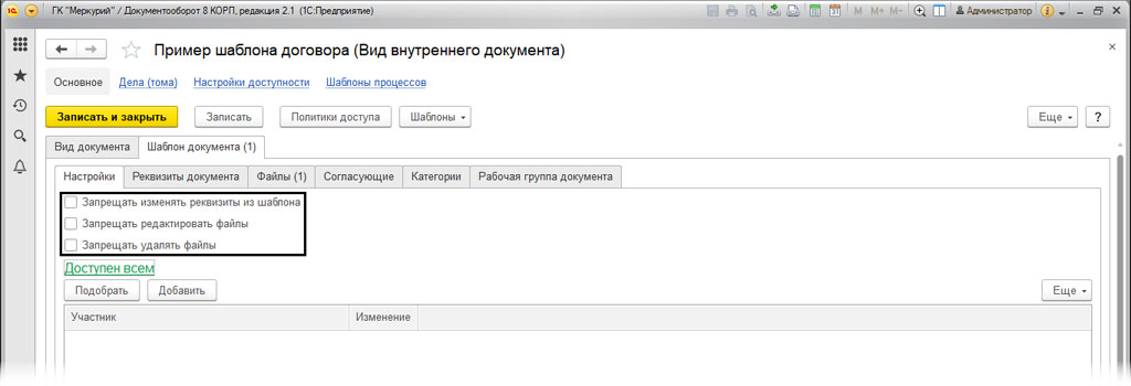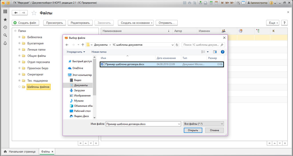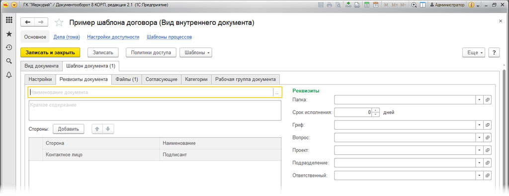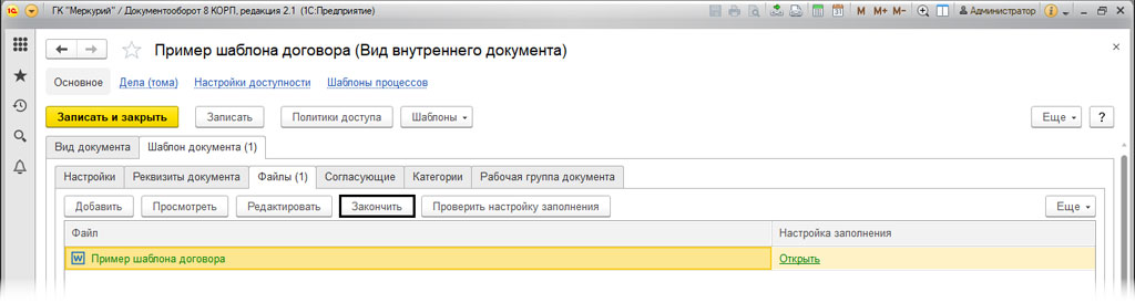 Как создать шаблон в 1C Документооборот