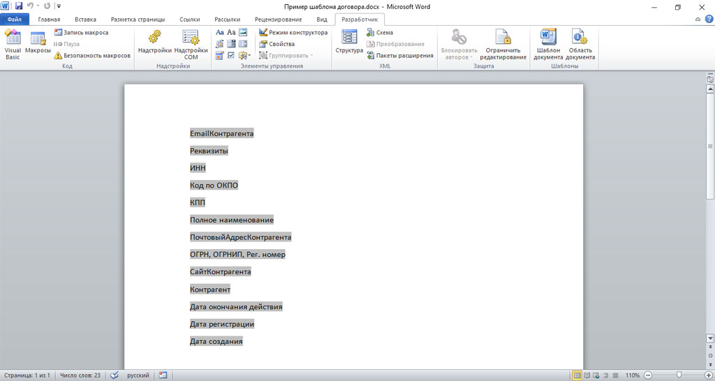 Отмеченные реквизиты перенесутся в пустой документ. После его потребуется подготовить вставить в нужное место текст