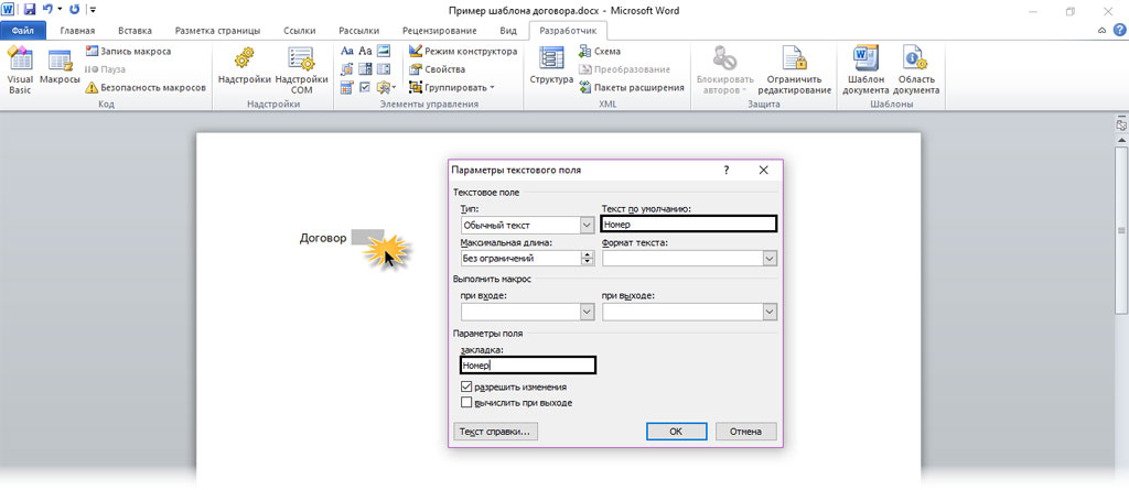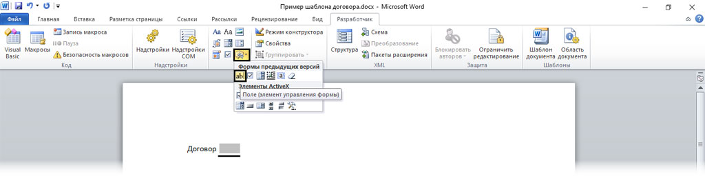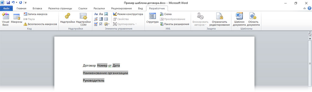 Как сформировать заполняемые поля шаблона напрямую в MS Word
