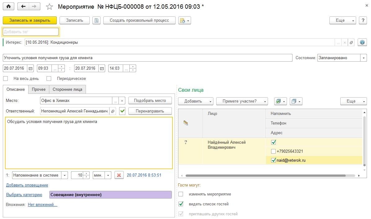 - История клиента. Все договоренности, события, документы и файлы можно найти в карточке клиента. Сотрудник может ознакомиться с данными в любой момент. Это позволит точнее понимать потребности клиента. Ну и как же бывает приятно, когда менеджер помнит ваше имя или поздравляет вас с днем рождения.